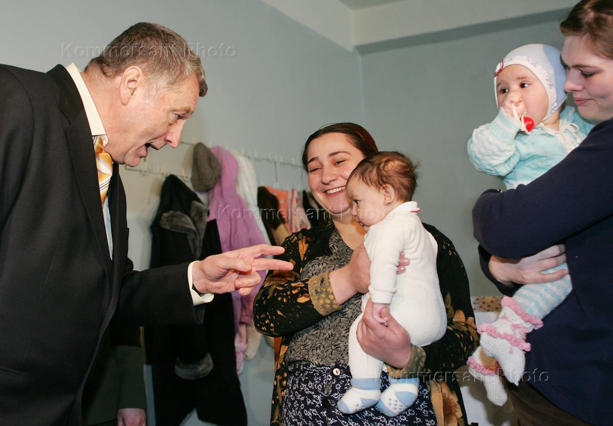 Заместитель председателя Государственной Думы России, лидер Либерально-демократической партии России (ЛДПР) Владимир Жириновский (слева) в канун 8 марта посетил московский женский следственный изолятор № 6 в Печатниках на улице Шоссейная. Владимир Жириновский в камере матерей с грудными детьми, родившимися за решеткой.