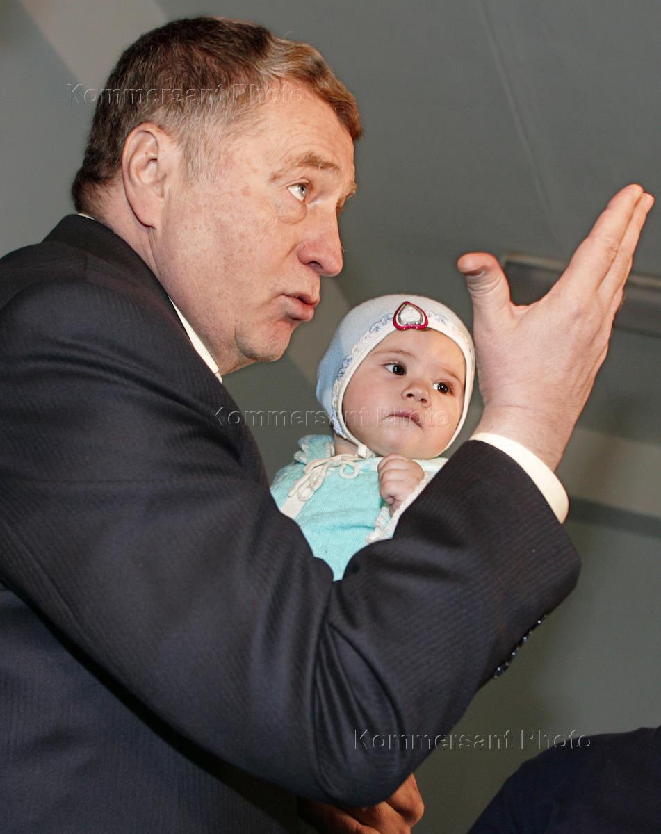 Заместитель председателя Государственной Думы России, лидер Либерально-демократической партии России (ЛДПР) Владимир Жириновский (слева) в канун 8 марта посетил московский женский следственный изолятор № 6 в Печатниках на улице Шоссейная. Владимир Жириновский в камере матерей с грудными детьми, родившимися за решеткой.