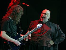 Певец Демис Руссос (справа) во время концерта в Московском Международном Доме музыки.