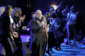 Певец Демис Руссос (в центре) во время концерта в Московском Международном Доме музыки.