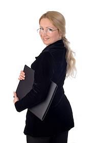 Девушка в салоне демонстрации макияжа. Образец делового макияжа.