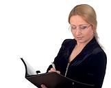 Девушка в салоне демонстрации макияжа. Образец делового макияжа.