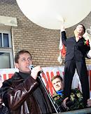 Лидер общероссийской общественной организации "Идущие вместе" Павел Тараканов (слева) во время проведения акции протеста против политики властей Тбилиси "Скатертью дорога!". Акция, организованная общероссийской общественной организацией "Идущие вместе", прошла у посольства Грузии.