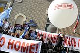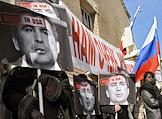Акция протеста против политики властей Тбилиси "Скатертью дорога!", организованная общероссийской общественной организацией "Идущие вместе", прошла у посольства Грузии. Участники акции запустили в небо чучело президента Грузии, что символизировало необходимость его отставки.