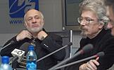 Главный редактор журнала "Дружба народов" Александр Эбаноидзе (слева) и писатель, лидер Национал-большевистской партии (НБП) Эдуард Лимонов (справа) на пресс-конференции, посвященной предстоящему вручению первой международной литературной премии "Исламский прорыв", учрежденной Советом муфтиев России, Федеральным агентством по печати и массовым коммуникациям и издательством "УММА. Пресс-конференция прошла в РИА "Новости".