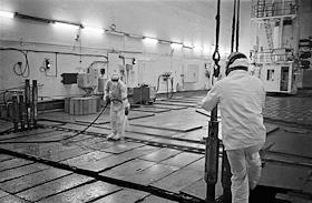 Монтаж плутониевых стержней с ядерным топливом в третьем энергоблоке Чернобыльской атомной электростанции (ЧАЭС).