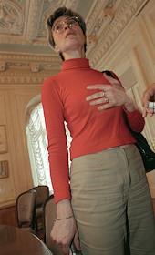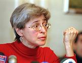 Журналистка "Новый газеты" Анна Политковская на пресс-конференции "Что произошло в Чечне с Анной Политковской" в агентстве "Интерфакс".