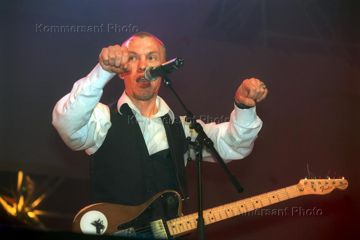 Leader of the "Va-bank" band Alexander F. Sklyar performs during the Maxidrome rock festival.