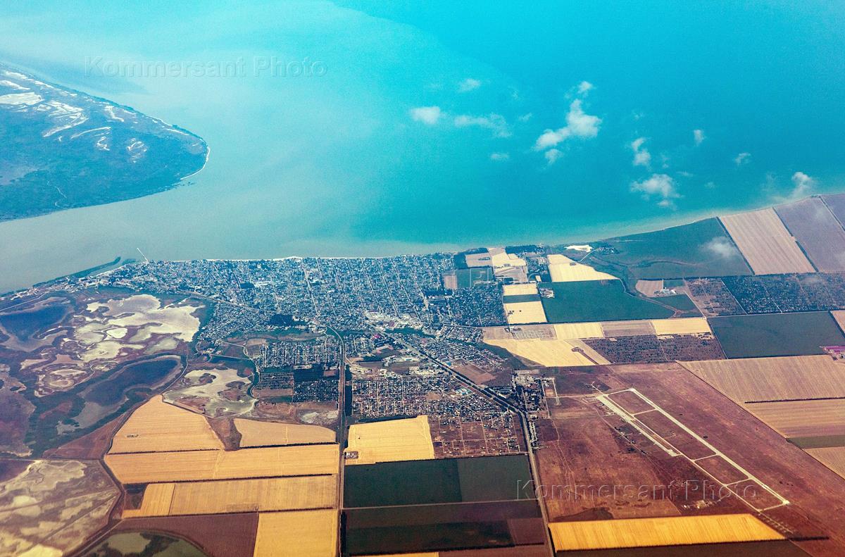 Виды города Новороссийска из иллюминатора самолета.