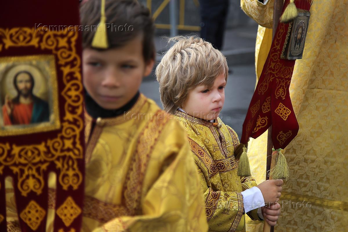 Празднования 294-й годовщины перенесения мощей святого благоверного князя Александра Невского. Крестный ход по Невскому проспекту – от Казанского собора до площади Александра Невского. Священнослужители во время Крестного хода.
