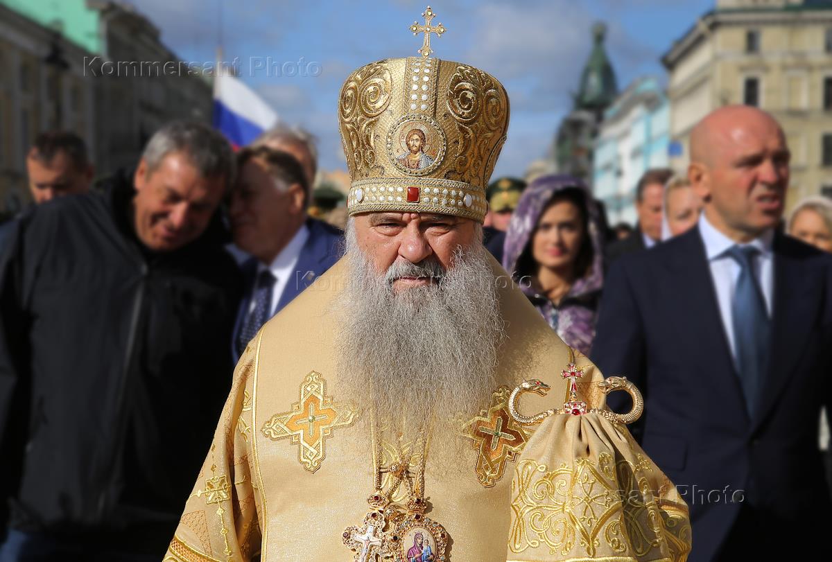 Празднования 294-й годовщины перенесения мощей святого благоверного князя Александра Невского. Крестный ход по Невскому проспекту – от Казанского собора до площади Александра Невского. Митрополит Санкт-Петербургский и Ладожский Варсонофий (в центре) во время Крестного хода.