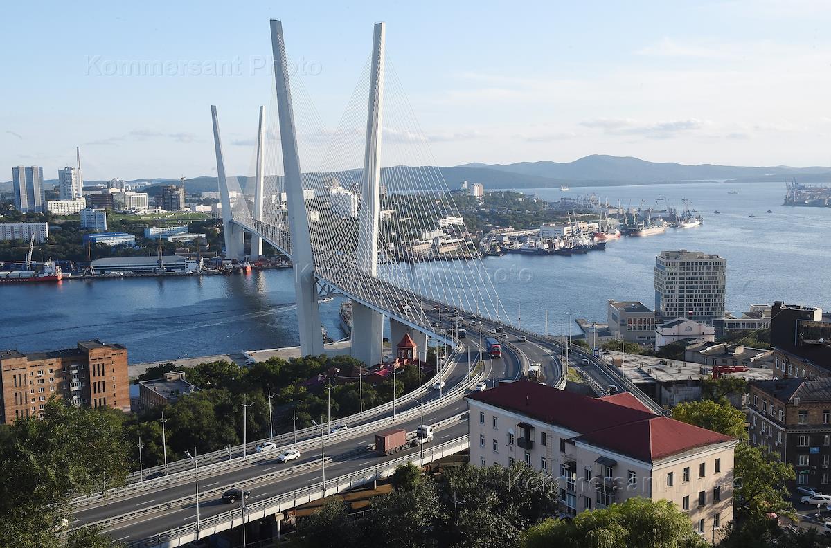 Eastern Ecomonic Forum (EEF-2018). Day three. Views of Vladivostok. The Russky Bridge, a cable-stayed bridge connects the Russky Island across the Eastern Bosphorus strait.