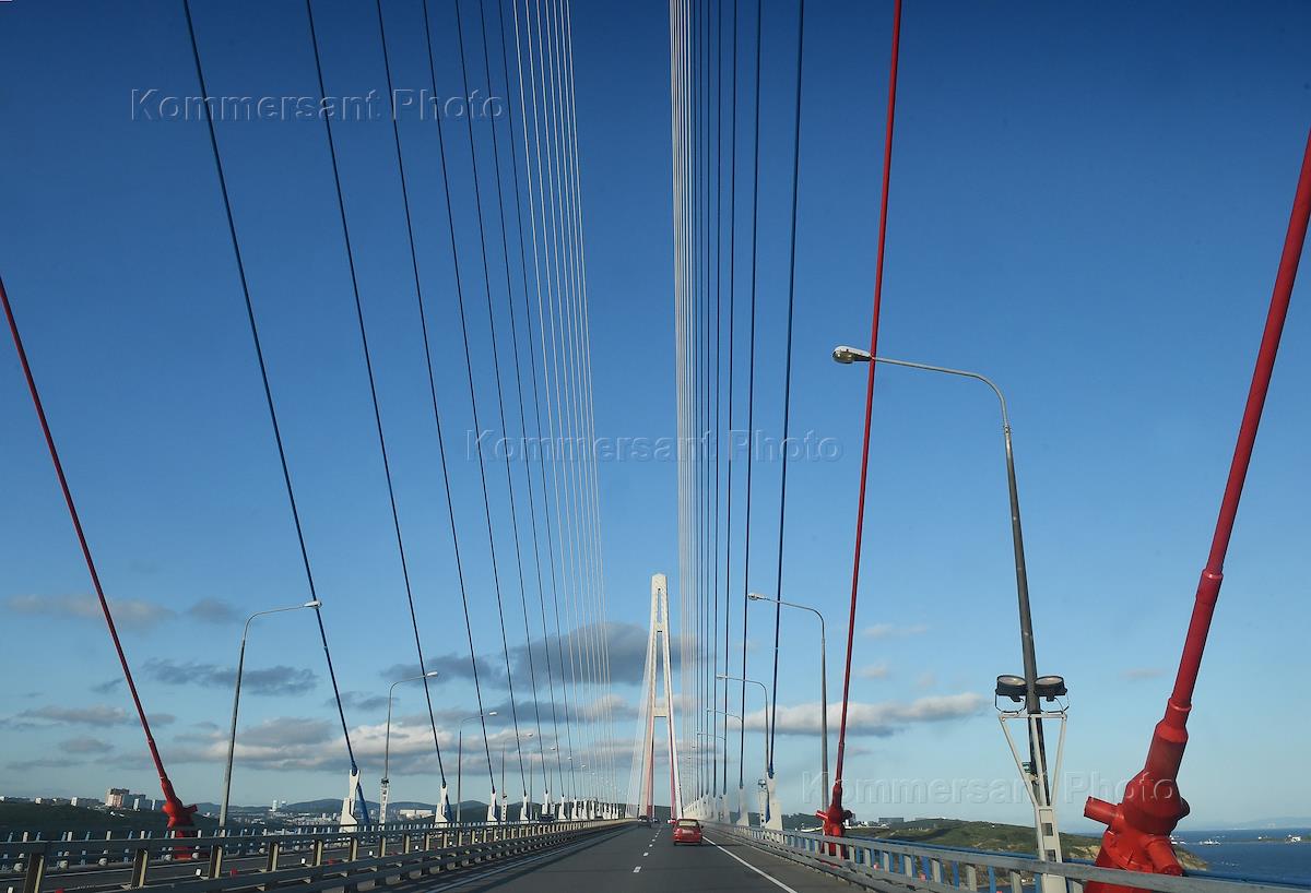 Eastern Ecomonic Forum (EEF-2018). Day three. Views of Vladivostok. The Russky Bridge, a cable-stayed bridge connects the Russky Island across the Eastern Bosphorus strait.