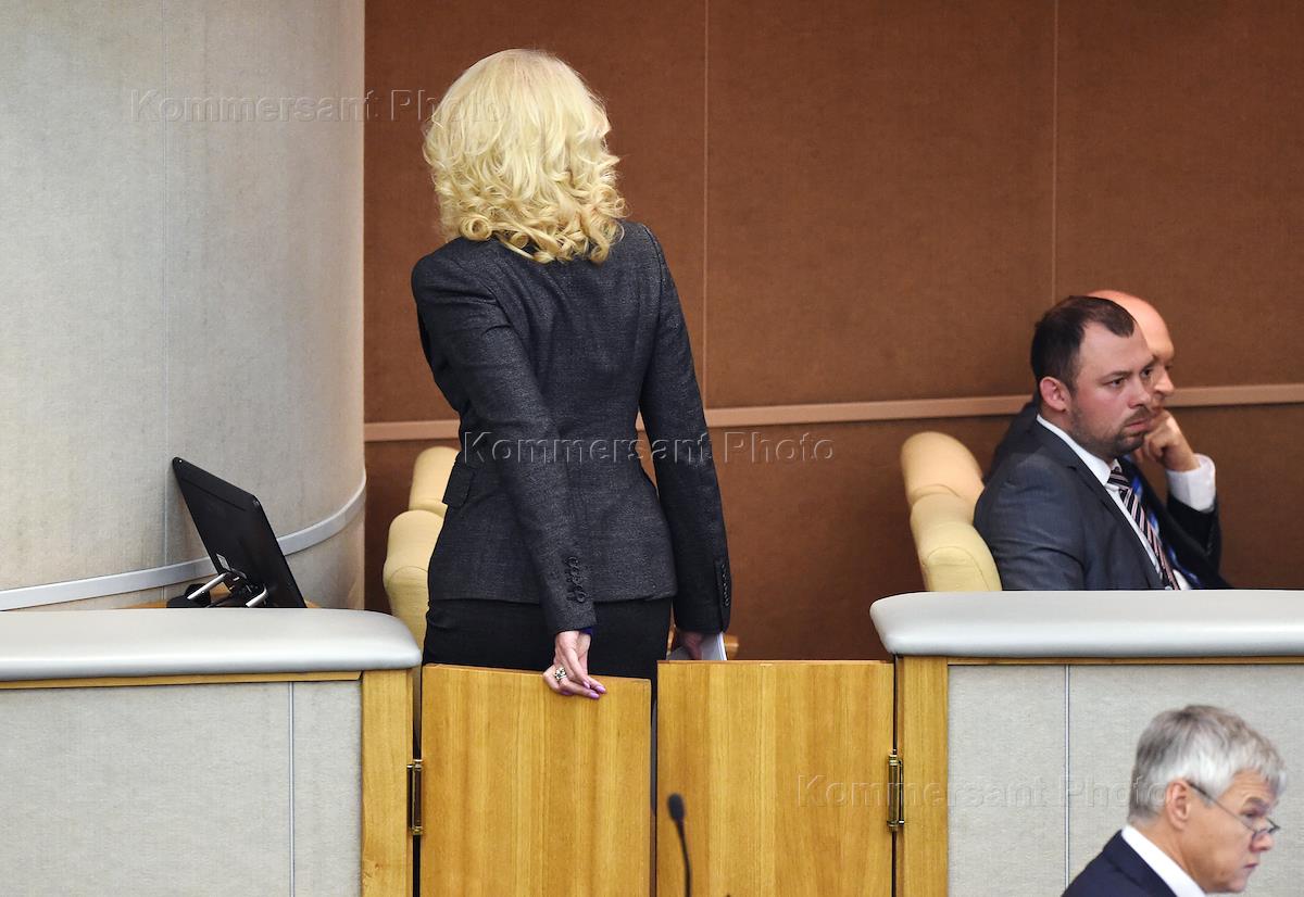 Пленарное заседание Государственной думы (ГД) России. Заместитель председателя Правительства России Татьяна Голикова (в центре) во время заседания.