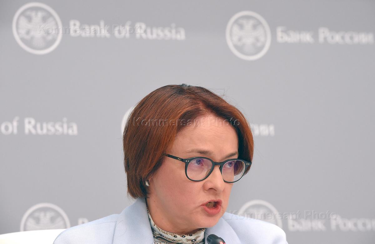 Chairwoman of Russian Central bank Elvira Nabiullina during the press conference at Board of Gevernors of Central Bank in Russian Bank at Neglinnaya street.