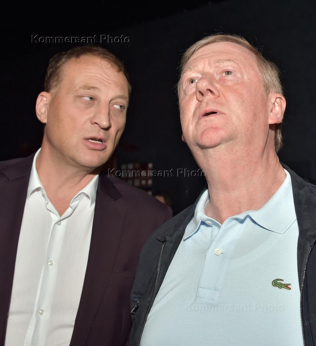 Торжественный прием, посвященный открытию музея "Собрание" российского бизнесмена и мецената Давида Якобашвили. Председатель правления ООО "УК "Роснано" Анатолий Чубайс (слева) и президент ООО "Орион Наследие" Давид Якобашвили (справа) на приеме.