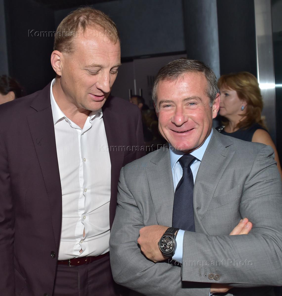 Торжественный прием, посвященный открытию музея "Собрание" российского бизнесмена и мецената Давида Якобашвили. Руководитель Федерального агентства по печати и массовым коммуникациям (ФАПМК) России Михаил Сеславинский (слева) и управляющий директор компании Х5 Retail Group Юрий Кобаладзе (справа) на приеме.