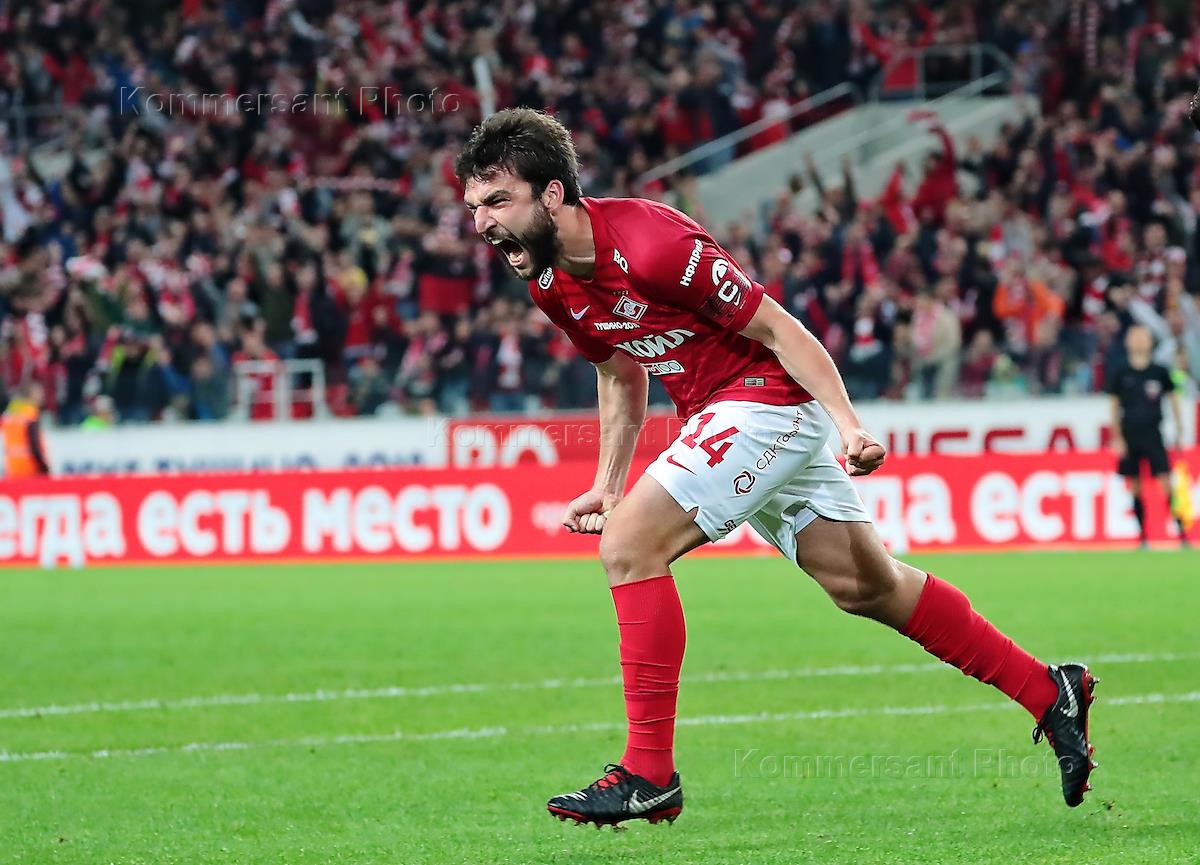 Russian premiere league 2018/2019. Tour seven. Match between Spartak football team (Moscow) and Akhmat football team (Grozny) at Otkritie Arena stadium. Spartak football player Gregoriy Dzhikiya during the match.