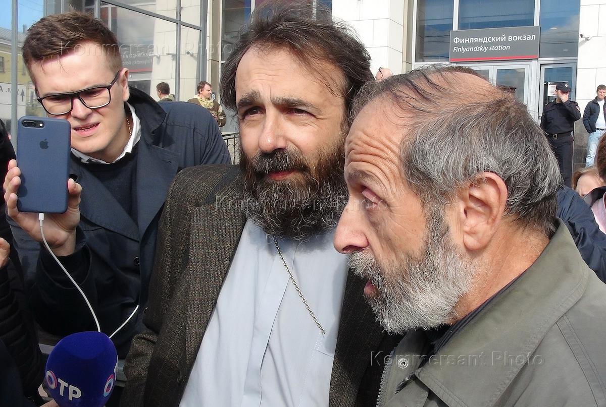 The rally of the United opposition against the pension reform called "Against the pension robbery" was held in the Sverdlovsk garden. Deputy of the Legislative Assembly of St. Petersburg Boris Vishnevsky (left) and former mayor of Yekaterinburg Eugene Roizman (right) are during the rally.