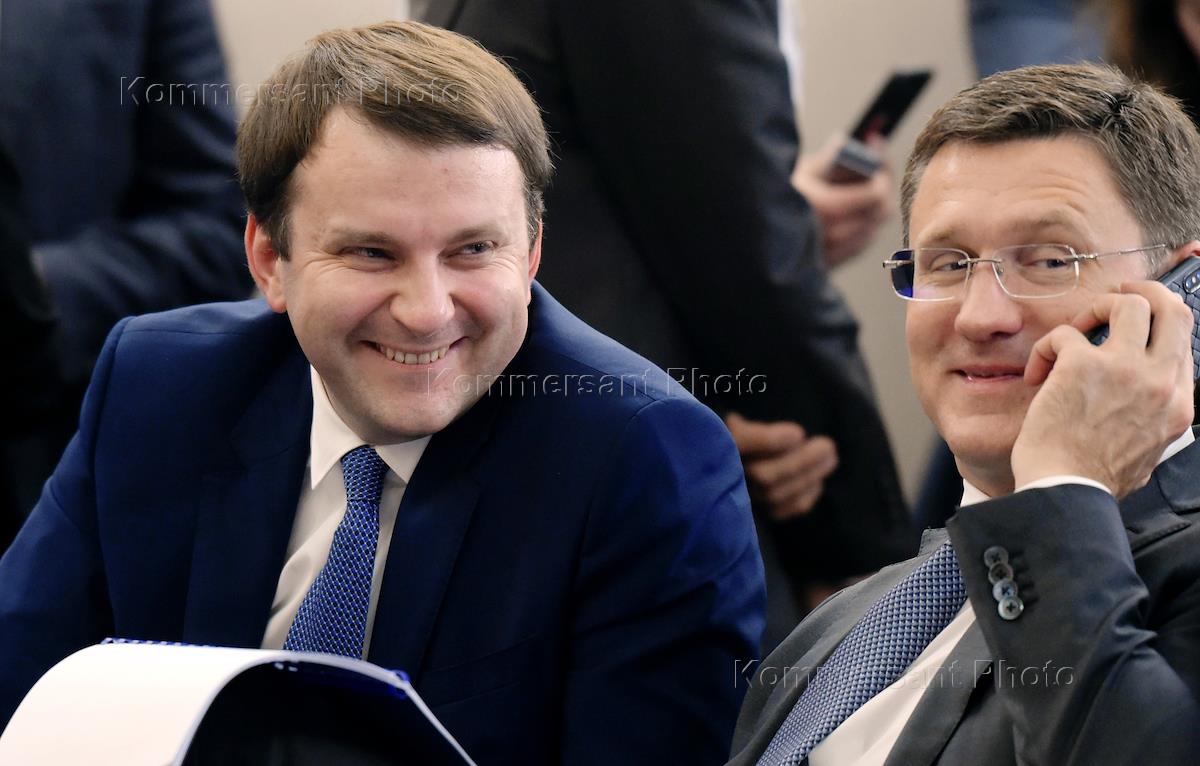 Рабочая поездка президента России Владимира Путина в Сочи. Слева направо: министр экономического развития России Максим Орешкин, министр энергетики России Александр Новак и первый заместитель председателя Правительства России - министр финансов России Антон Силуанов на встрече президента Турции Реджепа Тайипа Эрдогана и президента России Владимира Путина в резиденции "Бочаров ручей".