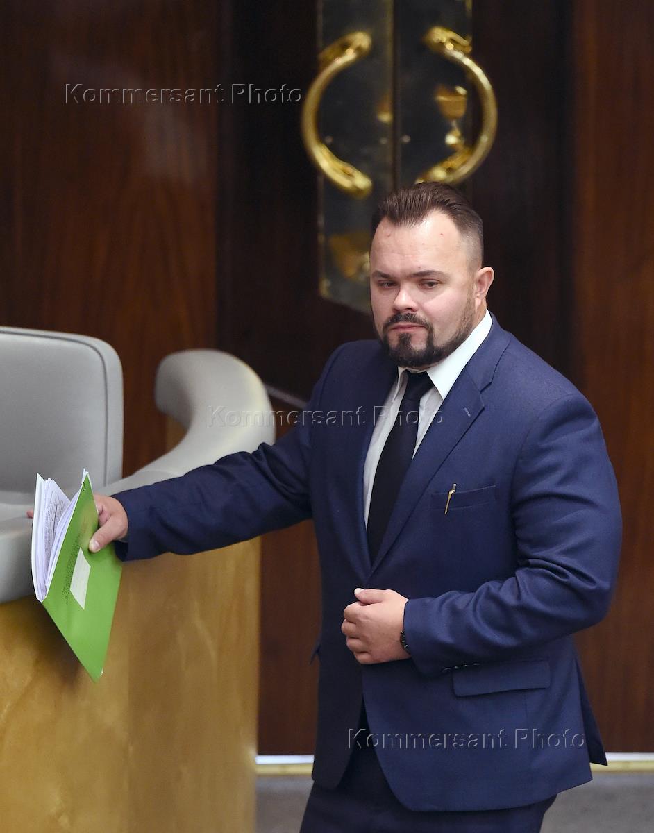 Пленарное заседание Государственной думы (ГД) России. Член комитета ГД России по экономической политике, промышленности, инновационному развитию и предпринимательству Виталий Бахметьев во время заседания.