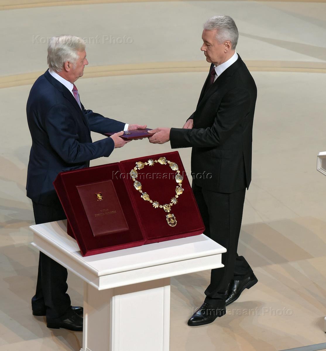 Торжественная церемония инаугурации мэра Москвы прошла в Московском концертном зале "Зарядье". Президент Российской академии художеств Зураб Церетели (в центре) и ректор Московского государственного университета (МГУ) имени М.В.Ломоносова Виктор Садовничий (справа) перед началом церемонии.