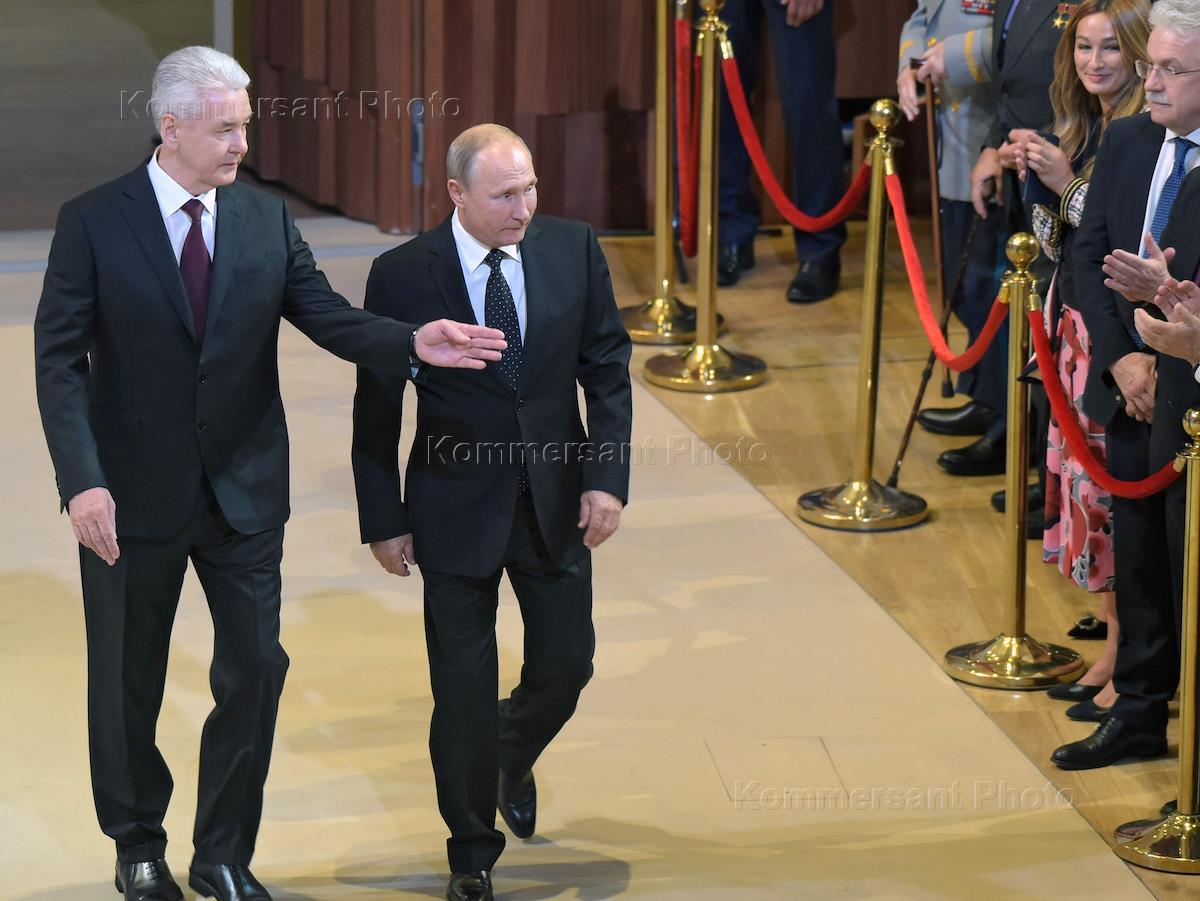 Торжественная церемония инаугурации мэра Москвы прошла в Московском концертном зале "Зарядье". Избранный мэр Москвы Сергей Собянин (слева) и президент России Владимир Путин (справа) во время церемонии.