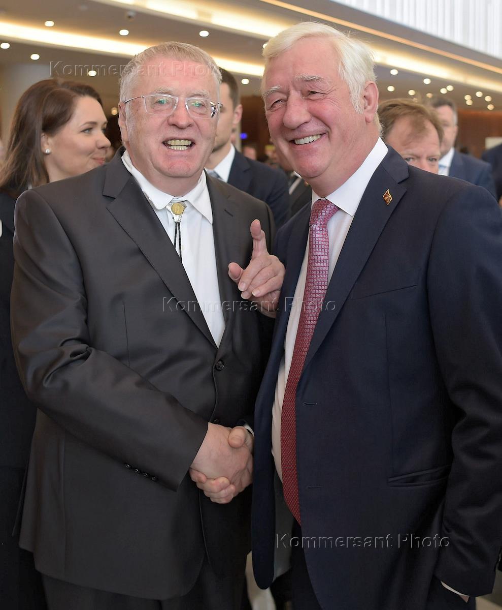 Торжественная церемония инаугурации мэра Москвы прошла в Московском концертном зале "Зарядье". Лидер Либерально-демократической партии России (ЛДПР) Владимир Жириновский (слева) и председатель Московской городской избирательной комиссии Валентин Горбунов (справа) перед началом церемонии.