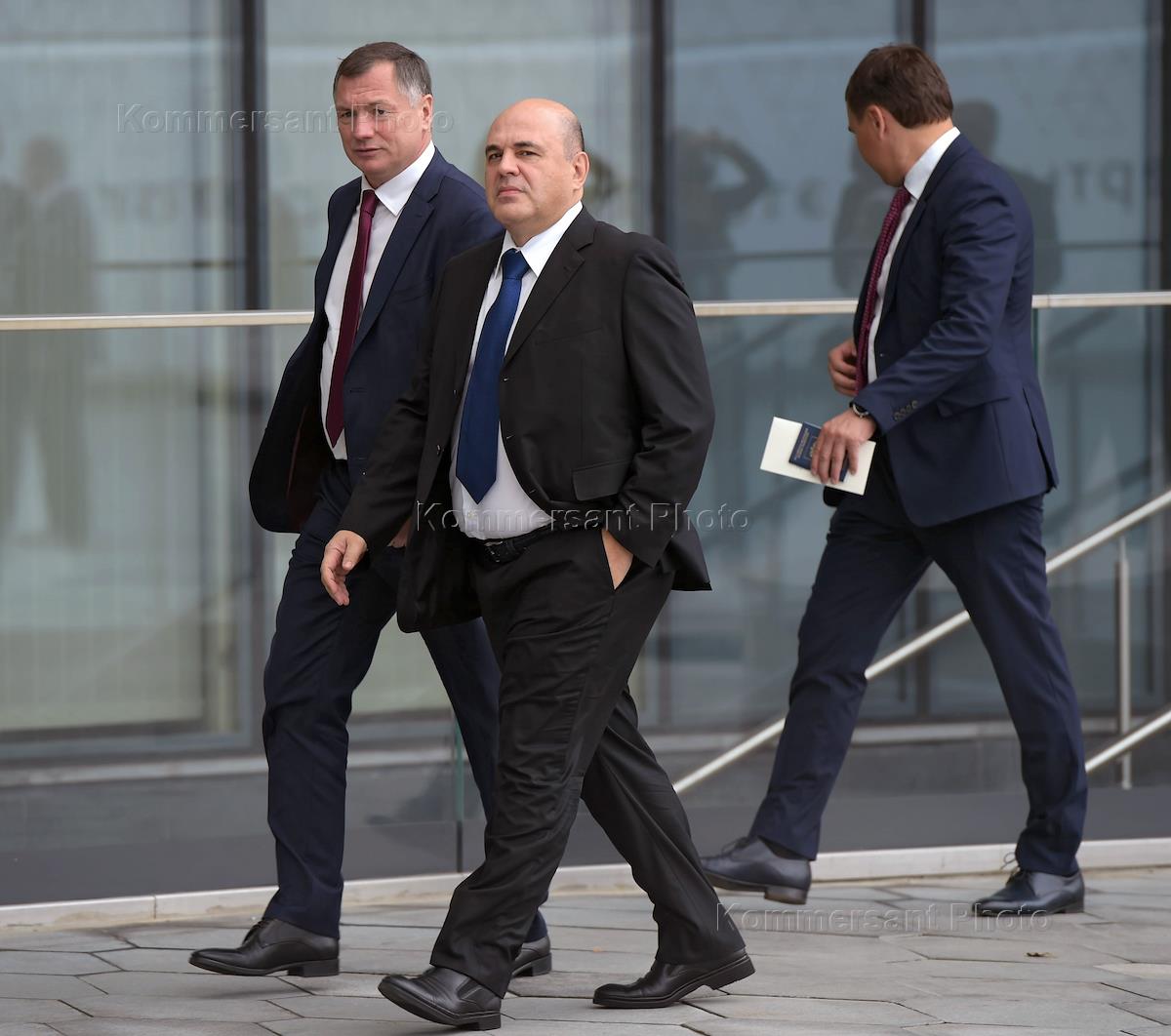 The innauguration ceremony of the Moscow mayor in the concert hall "Zaryadye". Deputy Moscow Mayor for Urban planning and Construction Marat Khusnullin (left) and Head of the Federal Tax Service of Russia Mikhail Mishustin (center) before the ceremony.