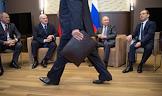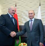 Рабочая поездка президента России Владимира Путина в Сочи. Президент Белоруссии Александр Лукашенко (справа) и премьер-министр Белоруссии Сергей Румас (слева) во время встречи с президентом России Владимиром Путиным в резиденции "Бочаров ручей".