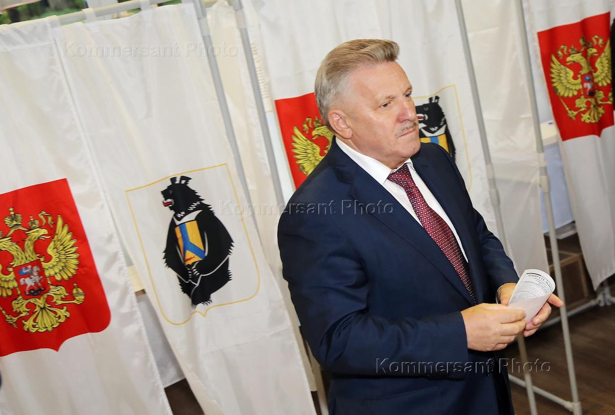 Выборы губернатора Хабаровского края. Второй тур. Кандидат от партии "Единая Россия", действующий глава региона Вячеслав Шпорт на избирательном участке.
