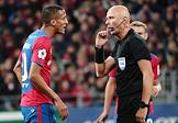 РПЛ. Чемпионат России по футболу 2018/2019. 8 тур. Матч между командами "Спартак" (Москва) и ЦСКА (Москва) прошел на стадионе "ВЭБ Арена". Игрок команды ЦСКА Родриго Бекао (слева) и главный судья Сергей Карасев (справа) во время матча.