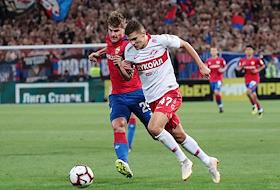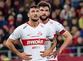 РПЛ. Чемпионат России по футболу 2018/2019. 8 тур. Матч между командами "Спартак" (Москва) и ЦСКА (Москва) прошел на стадионе "ВЭБ Арена". Игроки команды "Спартак" Георгий Джикия (справа) и Сальваторе Боккетти (слева) во время матча.