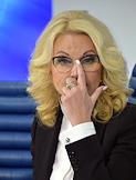 Пресс-конференция, посвященная результатам исследования среднего балла абитуриентов, зачисленных на бюджетные места в российские государственные высшие учебные заведения по результатам ЕГЭ в 2018 году, прошла в агентстве ТАСС. Заместитель председателя правительства России Татьяна Голикова во время пресс-конференции.