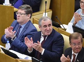 Пленарное заседание Государственной думы (ГД) России. Председатель Комитета ГД России по труду, социальной политике и делам ветеранов Ярослав Нилов (справа) во время выступления на заседании.