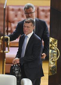 Пленарное заседание Государственной думы (ГД) России. Полномочный представитель правительства России в ГД России Александр Синенко (слева) во время заседания.