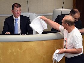 Пленарное заседание Государственной думы (ГД) России. Министр труда и социальной защиты России Максим Топилин (слева) во время заседания.