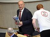 Пленарное заседание Государственной думы (ГД) России. Лидер КПРФ, член комитета ГД России по делам Содружества Независимых Государств, евразийской интеграции и связям с соотечественниками Геннадий Зюганов (в центре) перед началом заседания.