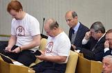 Пленарное заседание Государственной думы (ГД) России. Жанровая фотография. Депутаты ГД России на рабочих местах.