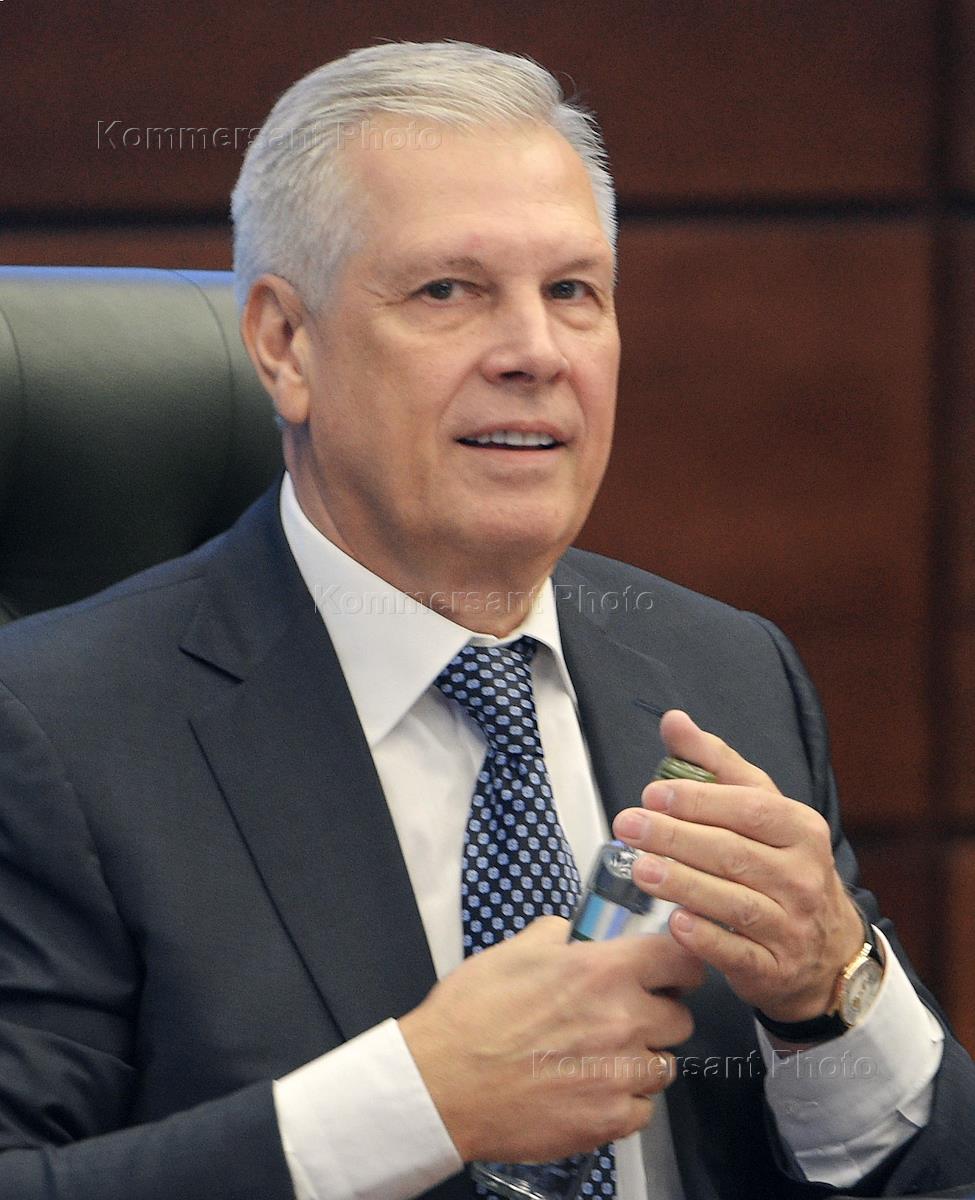 Заседание Государственной комиссии по противодействию незаконному обороту промышленной продукции в Национальном центре управления обороной России. Стаст-секретарь - заместитель министра промышленности и торговли России Виктор Евтухов (справа) во время заседания.
