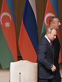 Рабочая поездка президента России Владимира Путина в Азербайджан. Президент России Владимир Путин (справа) и президент Азербайджана Ильхам Алиев (слева) во время участия в пленарном заседании Девятого российско-азербайджанского межрегионального форума.
