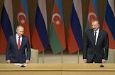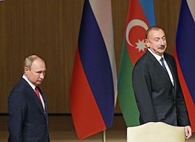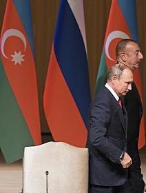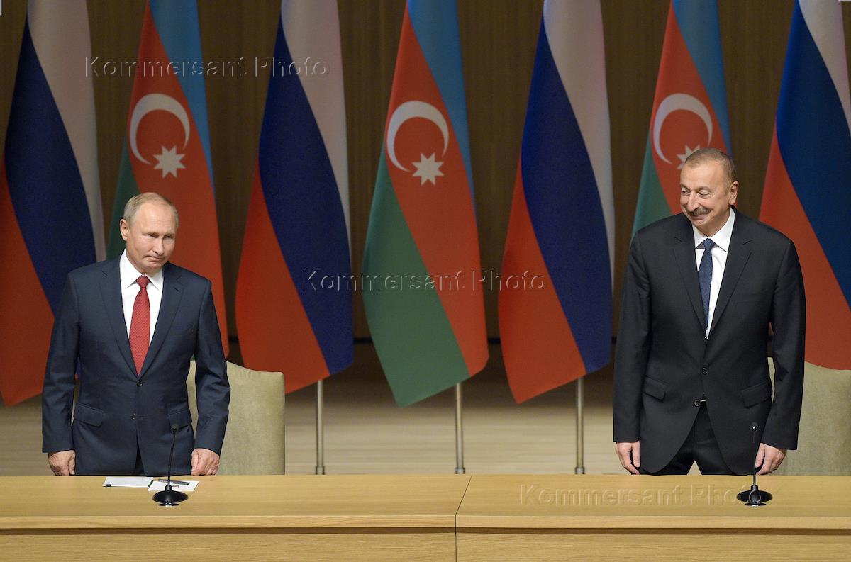 Рабочая поездка президента России Владимира Путина в Азербайджан. Президент России Владимир Путин (справа) и президент Азербайджана Ильхам Алиев (слева) во время участия в пленарном заседании Девятого российско-азербайджанского межрегионального форума.