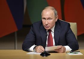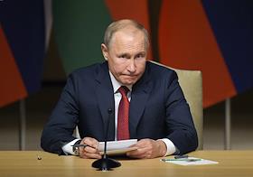 Рабочая поездка президента России Владимира Путина в Азербайджан. Президент России Владимир Путин во время участия в пленарном заседании Девятого российско-азербайджанского межрегионального форума.