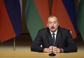 Рабочая поездка президента России Владимира Путина в Азербайджан. Президент Азербайджана Ильхам Алиев во время участия в пленарном заседании Девятого российско-азербайджанского межрегионального форума.