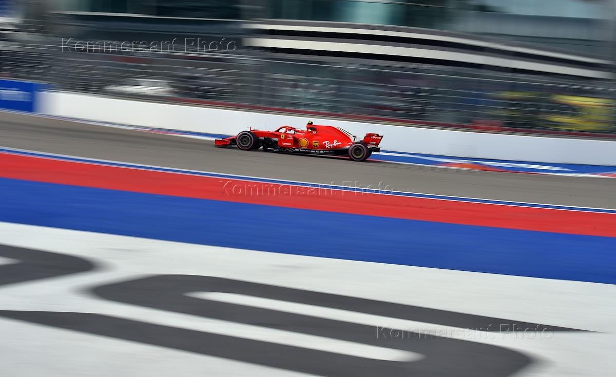 Пятый этап Чемпионата мира по кольцевым автогонкам Формула 1 ВТБ Гран-При России 2018. Гонщик команды Scuderia Ferrari Кими Райкконен во время заезда.