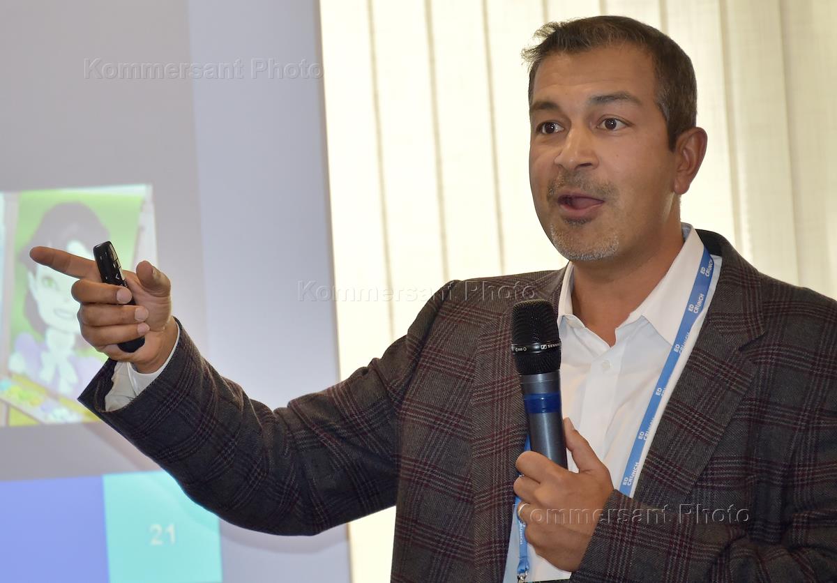 Конференциия в области новых образовательных технологиий EdCrunch прошла в Центре международной торговли (ЦМТ). Сооснователь и генеральный директор Kidaptive (США) Пи Джей Гунсагар во время выступления с докладом "Современные технологии и развитие навыков учащихся 21 века: направления применения".