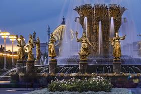 Виды вечерней Москвы. ВДНХ. Фонтан "Дружба народов".