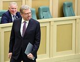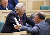 Пленарное заседание Совета Федерации (СФ) России. Представитель от исполнительного органа государственной власти Республики Мордовия Сергей Кисляк (слева) и председатель комитета Совета федерации по международным делам Константин Косачев (справа) во время заседания.