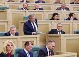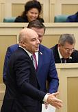 Пленарное заседание Совета Федерации (СФ) России. Представитель в СФ России от законодательной власти Курской области Валерий Рязанский (в центре) во время заседания.