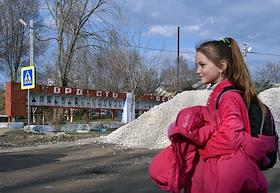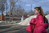 Виды Гагаузии. Жанровая фотография. Девочка идет мимо щебня по сельской улице.